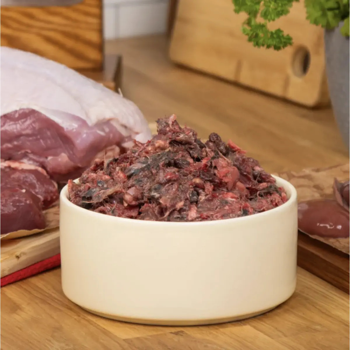 | Ingredients | 30% Venison, 20% Ox Heart, 20% Ox Lung, 10% Turkey Bone, 10% Turkey Meat, 5% Ox Liver and 5% Ox Spleen |