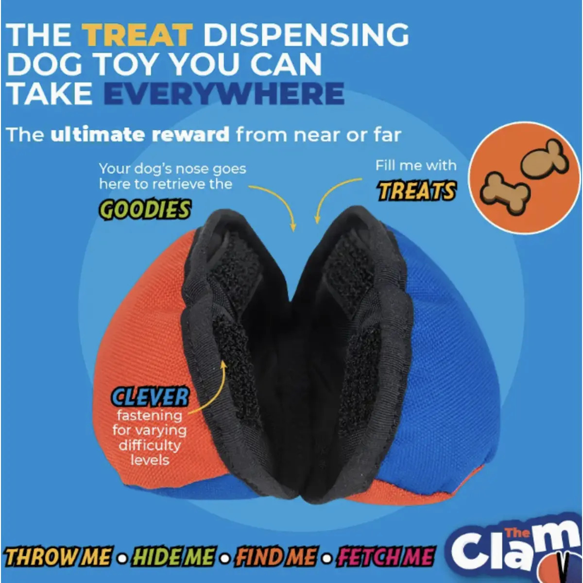 If you’re struggling with your dog’s recall, looking for ways to provide mental stimulation, or simply want to snap up the best treat dispensing toy for your pup - The Clam is for you!